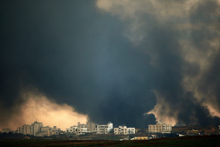 Smoke rises during Israel's offensive in the northern Gaza Strip in the late afternoon January 11, 2009. [Xinhua]