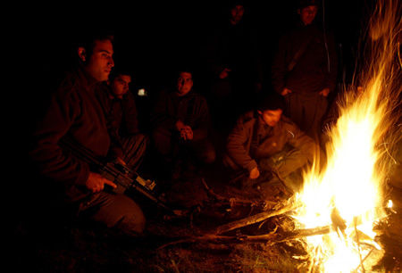 Israeli reservists sits around a fire just outside the Gaza Strip January 12, 2009. An Israeli military spokesman said army reservists had been thrown into the campaign that Israel launched with the declared aim of ending cross-border rocket attacks from the Hamas-ruled territory to its south. Israeli troops fought gun battles with Hamas fighters on Monday, keeping military pressure on the Islamist group while avoiding all-out urban warfare that would complicate ongoing diplomatic efforts to end the Gaza war. [Agencies]