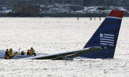 Passengers are rescued rescued after a US Airways plane landed in the Hudson River in New York, January 15, 2009. A US Airways jet with more than 150 people on board came down into the frigid Hudson River off Manhattan after apparently hitting a flock of geese on Thursday and officials said everyone was rescued. [Agencies]