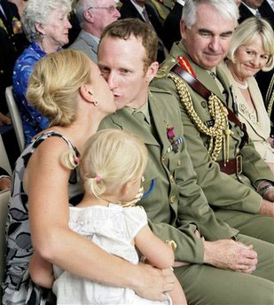 The 29-year-old Australian left cover and deliberately exposed himself to insurgent fire in an attempt to draw it away from his wounded comrades. For his actions during the battle last year in Afghanistan's Uruzgan province, Donaldson was awarded the Victoria Cross on Friday -- the highest military honor in the British Commonwealth. He is the first Australian in 40 years to receive the award. Donaldson -- who was feted as a hero by Prime Minister Kevin Rudd at Friday's award ceremony in Canberra -- said he was just doing his job. "I'm trained to fight and that's all we do -- it's instinct and it's natural," the red-haired Donaldson told reporters after the ceremony, where Governor General Quentin Bryce pinned the medal to the front of his dress uniform. "You don't really think about it at the time. You just do what you've got to do," he said. The Taliban insurgents opened fire on a patrol of Australian, US and Afghan troops on Sept. 2, 2008, as it returned to base after killing at least 13 Taliban during an operation the previous day, defense officials said. The attackers were well entrenched, coordinated and effective fighters, Donaldson's citation said. Donaldson, a commando in the Special Air Services, moved quickly to counterattack, darting from cover to cover, training fire on the enemy. He then decided to expose himself in hopes of protecting the wounded. "This selfless act alone bought enough time for those wounded to be moved to relative safety," his citation said. The patrol tried to maneuver their humvees out of the trap. With the casualties taking up all available space inside, Donaldson was left to run along side his vehicle. But as they made their way out, he spotted a severely wounded Afghan interpreter who was being left behind. He broke from cover again, crossing 90 yards (80 meters) of open ground to grab the interpreter and carry him back to the patrol. Throughout the two-hour running battle that covered more than two miles (4 kilometers) before the patrol shook off the enemy, Donaldson gave first aid to wounded soldiers between exchanges of gunfire with the enemy. More than a dozen coalition troops were wounded; none died. "Generations of school children will now know of the story of Trooper Mark Donaldson," Rudd said at the ceremony. "It is a story of a hero, one which will be told in classrooms, workplaces and watering holes for many years to come." His wife, Emma, who attended the ceremony with their 2-year-old daughter Kaylee, said she would not ask her husband to be more careful in the future. "He was married to the army before he married me and I support him all the way," she said. Donaldson is the 97th Australian to receive the award since the South African Boer War of 1899-1902. About half have died during their acts of bravery. Introduced by Britain's Queen Victoria in 1856, the Victoria Cross is the highest military honor for countries that were once part of the British Empire. The United States' highest military accolade for valor, the Medal of Honor, has so far been given once for service in Afghanistan, in October 2007 to the family of Navy Seal Lt. Michael Murphy who was killed in action in 2005. Four of the medals have been awarded for service in Iraq. British Royal Marine Lance Cpl. Matthew Croucher earned a George Cross last year for diving on a live grenade to protect his men in Afghanistan. His body armor absorbed most of the blast and he was not seriously hurt. The George Cross is as high a distinction as the Victoria Cross, but the latter is only awarded for bravery during direct confrontation with the enemy. Keith Payne, 75, was the last Australian to win the Victoria Cross. "His life now is changed forever," said Payne, who earned the award for bravery in Vietnam in 1969. |