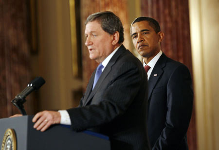 By ordering shut the prison camp at Guantanamo Bay, Cuba, closing any remaining CIA secret prisons overseas and banning harsh interrogation practices, Obama said he was signaling that the US would confront global violence without sacrificing "our values and our ideals." "First, I can say without exception or equivocation that the United States will not torture," he said. "Second, we will close the Guantanamo Bay detention camp and determine how to deal with those who have been held there." The US president and Clinton jointly announced the appointment of former Senate Majority Leader George Mitchell, a veteran troubleshooter who helped broker peace in Northern Ireland, as special envoy to the Middle East. Former UN Ambassador Richard Holbrooke, who helped write the peace deal that ended Bosnia's 1992-95 war, was named special envoy for Pakistan and Afghanistan.