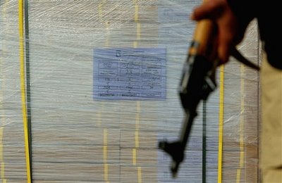 An Iraqi security guard is seen near boxes of ballots to be used in the upcoming provincial elections at Baghdad airport, Baghdad, Iraq, Thursday, Jan. 22, 2009. The provincial elections are scheduled to take place on January 31. [Agencies]
