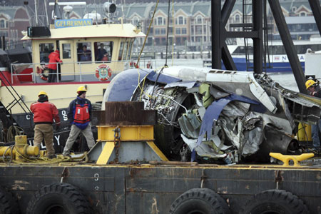 Engine of crash-landed plane pulled from Hudson River