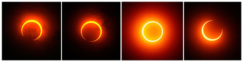 A combination photograph of the Moon passing between the Sun and the Earth during an annular solar eclipse as seen from Bandar Lampung, Indonesia Lampung province January 26, 2009. Photograph taken with solar filter on a lens.[Agencies]