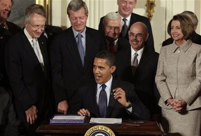 "As I think everybody here will agree, this is only the first step," Obama said of the bill that reauthorizes the State Children's Health Insurance Program. "Because the way I see it, providing coverage to 11 million children through CHIP is a down payment on my commitment to cover every single American," he said to applause before turning to the economic recovery bill. "It won't be easy; it won't happen all at once," Obama said. "But this bill that I'm about to sign, that wasn't easy either." Obama and his advisers see the economic crisis as his window to push through many of his campaign pledges. Renewable energy, financial regulation and even rural Internet access all have been tied to repairing the nation's fractured economy. In the process, Obama has exposed his plan to criticism and questions that threaten to jettison the first major legislation his team has assembled. "I refuse to accept that millions of our children fail to reach their full potential because we fail to meet their basic needs. In a decent society, there are certain obligations that are not subject to trade-offs or negotiations, and health care for our children is one of those obligations," Obama said, signaling he was readying for a fight. Obama has faced a difficult week, his second full one in office. Daschle, the former Senate Democratic leader, withdrew his nomination as secretary of health and human services after acknowledging he failed to pay taxes on a car and driver provided by a Democratic fundraiser. His departure also left in the president's team a large gap for someone to usher through sweeping reform Obama has promised. |