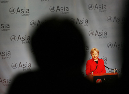 US Secretary of State Hillary Clinton speaks to an audience at the Asia Society in New York February 13, 2009. [Agencies]