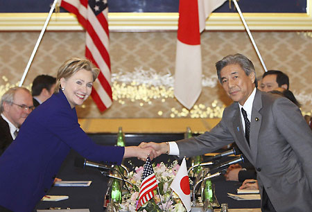 Aso, deeply unpopular at home, will be the first foreign leader to visit President Barack Obama at the White House, and the Feb. 24 summit is a sign that the world's two largest economies know they have a special responsibility to deal the global financial crisis, Clinton said. She had hoped to broaden US-Asian relations to include climate change, clean energy and the world's economic woes on her maiden overseas voyage, but North Korea and its increasingly belligerent rhetoric toward its neighbors were clearly at the top of her agenda. Just before she arrived in Japan on Monday, North Korea claimed it has the right to "space development" - a term it has used in the past to disguise a long-range missile test as a satellite launch. A day later, Clinton, without prompting, told reporters at a joint news conference with Japanese Foreign Minister Hirofumi Nakasone that such a move would jeopardize the Obama administration's willingness to work for better ties with Pyongyang. "The possible missile launch that North Korea is talking about would be very unhelpful in moving our relationship forward," she said, adding that if Pyongyang wants to end its isolation it also has to fulfill unmet denuclearization pledges made during the Bush administration. "The decision as to whether North Korea will cooperate in the six-party talks, end provocative language and actions is up to them and we are watching very closely," Clinton said, referring to the six-nation talks aimed at getting North Korea to abandon nuclear weapons. "If North Korea abides by the obligations it has already entered into and verifiably and completely eliminates its nuclear program, then there will be a reciprocal response certainly from the United States," she said. "It is truly up to the North Koreans." |