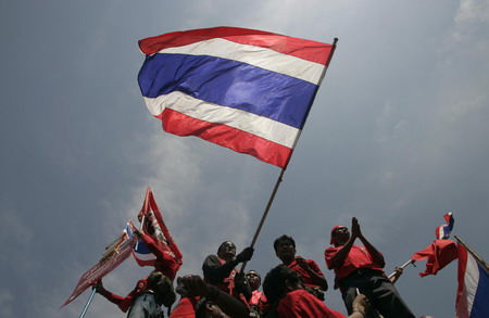Supporters of former Thai Prime Minister Thaksin Shinawatra wave a Thai flag during an anti-government protest outside the Government House in Bangkok February 24, 2009. [Agencies]