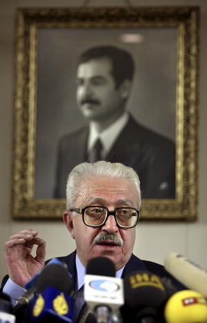 The conviction was the first against Aziz, who for years was the former regime's public face to West. Saddam's cousin "Chemical Ali" al-Majid also got a 15-year sentence for his role in the mass execution. Two of Saddam's half-brothers, former Interior Minister Watban Ibrahim al-Hassan and director of public security Sabawi Ibrahim, were sentenced to death. Wednesday's conviction came just over a week after Aziz was acquitted of being responsible for a brutal crackdown on Shiite protesters that followed the 1999 assassination of a revered cleric, Grand Ayatollah Mohammed Sadeq al-Sadr - the father of anti-US cleric Muqtada al-Sadr. Three other former regime officials were sentenced to death in that case, including Chemical Ali. It was his third death sentence for atrocities under Saddam's rule. Aziz, the only Christian in Saddam's mostly Sunni Muslim regime, became internationally known as Saddam's defender in the 1980-1988 Iran-Iraq war, the 1990 Iraqi invasion of Kuwait, the 1991 Gulf War and in the run-up to the 2003 US-led invasion that toppled the regime. Aziz, who was No. 25 on the deck of cards of wanted regime figures issued after Saddam's ouster, surrendered to American forces on April 25, 2003. The trial, which opened in April of last year but faced many delays, deals with the execution of the 42 merchants accused by Saddam's government of being behind a sharp increase in food prices when the country was experiencing hardships under strict UN sanctions. The merchants were rounded up over two days in July 1992 from Baghdad's wholesale markets and charged with manipulating food supplies to drive up prices at a time when many Iraqis were suffering economically. All 42 were executed hours later after a quick trial. Judge Raouf Abdul-Rahman - a Kurd who sentenced Saddam to death by hanging - presided over the trial. Three other defendants got sentences of life in prison, 15 years and six years. Abdul-Rahman said former Central Bank Gov. Issam Rashid Hweish was acquitted for lack of evidence. |