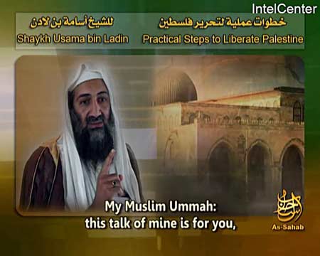 The list, he said, should include the British Broadcasting Corporation, US-funded Arabic-language television al-Hurra in Iraq, and the Saudi-funded Al Arabiya channel in Dubai. Bin Laden described Israel's offensive in Gaza and its attacks on the Palestinian territory as a "holocaust" and said militants wanting to help Gazans should support Iraqis fighting US-led forces and Baghdad's government. "It is clear that some Arab leaders have plotted with the Zionist-crusader coalition against our (Muslim) people, these (Arab countries) the United States calls the moderate states," bin Laden said. "We must seriously work and prepare for jihad to enforce the right and abolish the wrong," bin Laden said in the 33-minute audio recording dated March 2009, that was posted on Saturday. He made a similar call for jihad on January 14. "The valuable and rare opportunity for those who sincerely want to free (Jerusalem) is to support the mujahideen in Iraq with everything they need to free the country," he said, adding that Jordan would be the next country to be liberated, giving militants access to the West Bank. The recording entitled "Practical steps to liberate Palestine", in which the speaker's voice sounded like earlier bin Laden messages, was produced by al Qaeda media arm As-Sahab. It was accompanied by an English translation of its text. "Gaza's holocaust after the long siege is a historic event and tragedy that underlines the need for a separation between Muslims and hypocrites," bin Laden said. More than 60 messages have been broadcast by bin Laden, his second-in-command Ayman al-Zawahri and their allies since the September 11 attacks in 2001. |