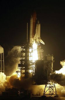 The space shuttle Discovery lifts off Sunday March 15, 2009 at the Kennedy Space Center in Cape Canaveral, Fla. Seven astronauts are beginning a 12-day mission to the international space station. [Agencies]