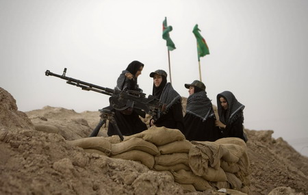 Women stand next to an anti-aircraft gun during their visit to a war memorial site near the Iraqi border, 1,365 km (854 miles) southwest of Tehran in Khoozestan province, March 16, 2009. [Agencies]