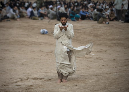A cleric prays during his visit to a war memorial site near the Iraqi border, 1,365 km (854 miles) southwest of Tehran in Khoozestan province, March 16, 2009. Iranians visit the main battlegrounds during the last week of the Iranian calendar to remember martyrs who died in the Iran-Iraq war (1980-88). [Agencies]