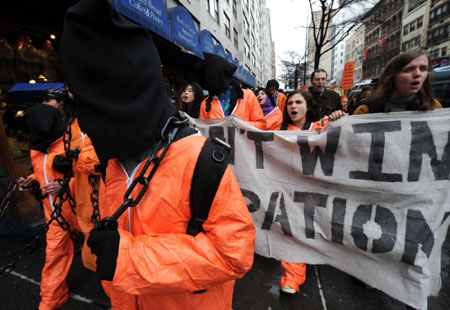 Anti-war demonstrators protest against the Iraqi war in New York, the United States, March 19, 2009, marking the 6th anniversary of the start of Iraq war. [Xinhua]