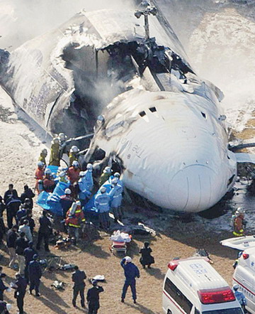Television footage showed the plane bounce and then burst into flames as it skidded to a halt on the runway. The twisted remains of the plane were still smoking hours after the crash.