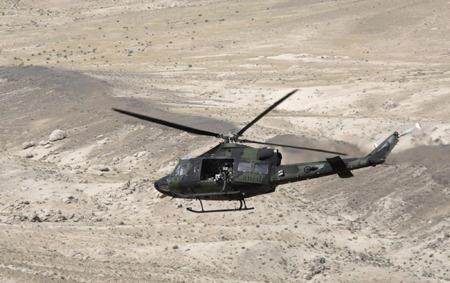 A Canadian CH 146 Griffon helicopter flys over a neighbourhood in Kandahar province, southern Afghanistan, March 27, 2009. [Agencies]