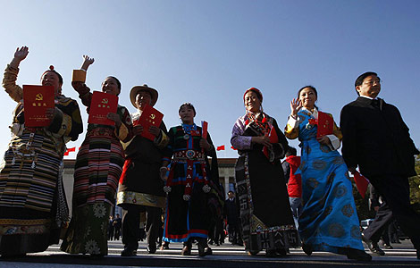 US President Barack Obama speaks during his election night victory rally in Chicago, November 7, 2012.[Photo/Agencies] |