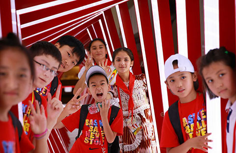 Park Geun-hye (L), presidential candidate of conservative and right wing ruling Saenuri Party, shows a painting drawn by a supporter's child, during her election campaign in Cheonan, 92 km (57 miles) south of Seoul Dec 17, 2012. Park is the daughter of former military dictator Park Chung-hee. The country's presidential election will be held on Wednesday. The Korean characters in the painting read, "I love our world". [Photo/Agencies]