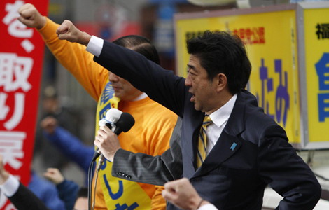 Japan's Liberal Democratic Party leader Shinzo Abe is evidently keen to curry favor with the United States ahead of the Dec 16 general election, which may see him become the nation's next prime minister.
