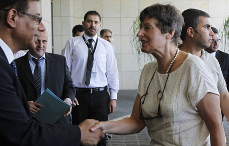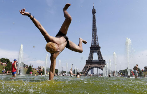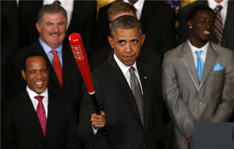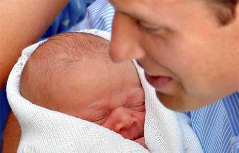 Britain's Prince William holds his baby son outside the Lindo Wing of St Mary's Hospital before leaving with Catherine, Duchess of Cambridge, in central London July 23, 2013.[Photo/Agencies] |