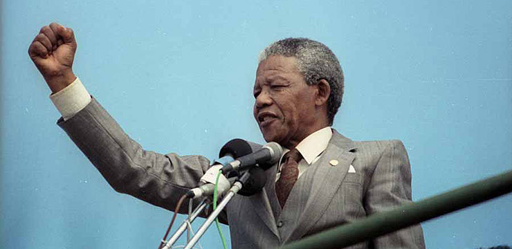 African National Congress (ANC) vice-president, Nelson Mandela, addresses a capacity crowd at a rally in Port Elizabeth in this April 1, 1990 file photo. Mandela has passed away on December 5, 2013 at the age of 95.
