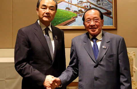 Chinese Foreign Minister Wang Yi has met with his Asian counterparts on foreign affairs and national security Sartaj Aziz here to enhance bilateral relations.