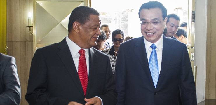 Chinese Premier Li Keqiang (L) and Ethiopian Prime Minister Hailemariam Desalegn meet press after their talks in Addis Ababa, Ethiopia, May 4, 2014.