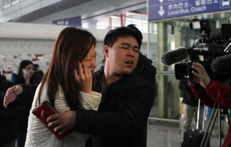 About 100 relatives and friends of the passengers on Flight MH370 spent much of Saturday at the Metropark Lido Hotel in northeast Beijing, waiting for updates from Malaysia Airlines on its missing jetliner.