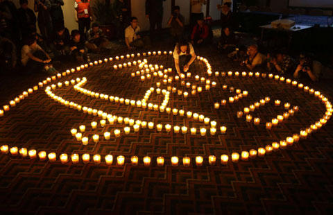 Family members of Chinese passengers aboard the missing Malaysia Airlines Flight MH370 held a candlelight prayer ceremony at the Beijing Lido Hotel on Tuesday for all those on board.