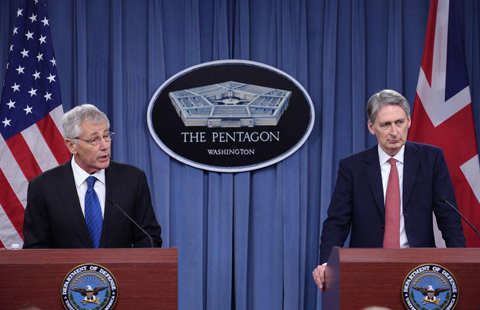 US Defense Secretary Chuck Hagel and his visiting British counterpart Philip Hammond said they can not rule out anything - including terrorism - yet on what happened to the missing jet.