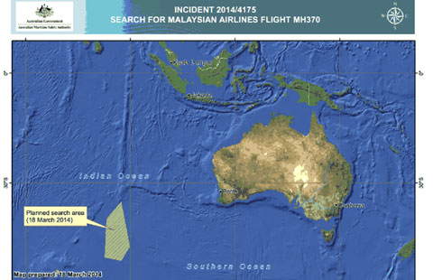Australia has begun the search operation for missing Malaysia Airline Flight MH370 in an area of 600,000 square kilometers off Western Australian coast.