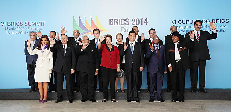 Chinese President Xi Jinping poses for a group photo before attending a summit with 11 Latin American and Caribbean leaders in Brasilia, Brazil, July 17, 2014.