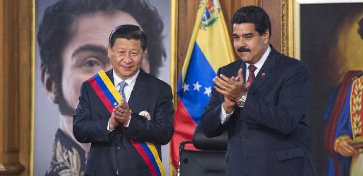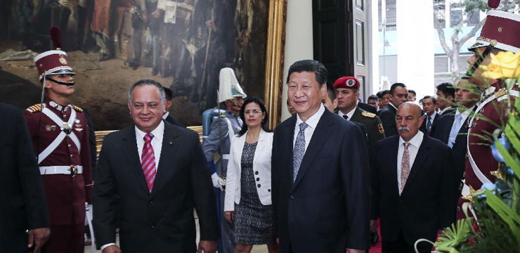 Chinese President Xi Jinping (L) is awarded Liberator Medal by his Venezuelan counterpart Nicolas Maduro in Caracas, Venezuela, July 20, 2014.