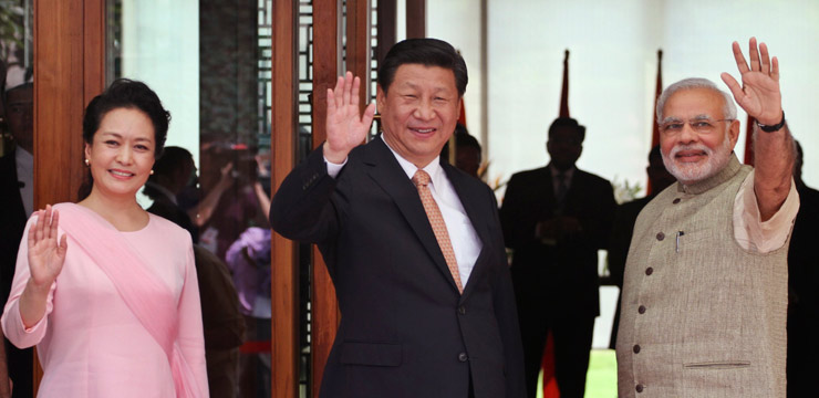Chinese President Xi Jinping meets with Indian Prime Minister Narendra Modi in Fortaleza, Brazil.