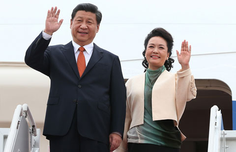 Upon arrival in Seoul, President Xi Jinping says he looks forward to exchanging in-depth views with South Korean President Park Geun-hye.
