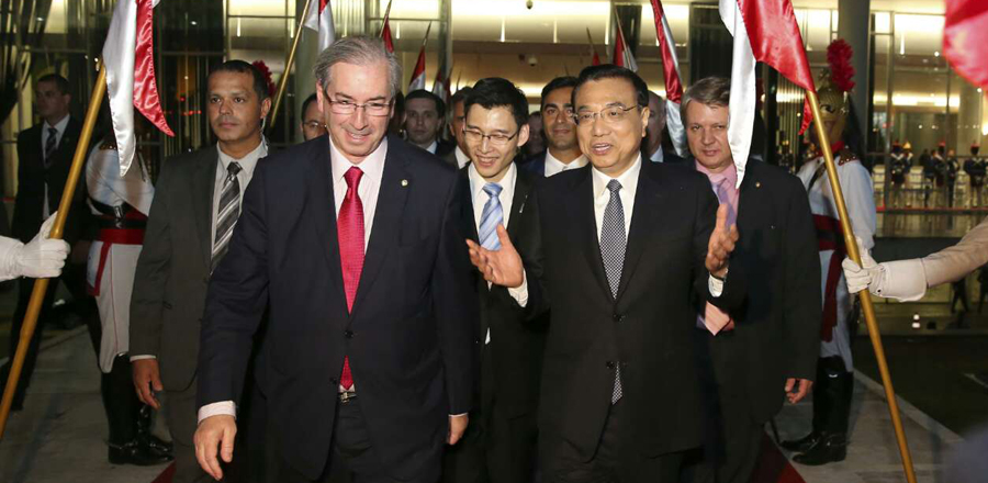 Visiting Chinese Premier Li Keqiang met here Tuesday with Renan Calheiros, president of the Federal Senate of the Brazilian National Congress, and Eduardo Cunha, president of the Brazilian Chamber of Deputies. Both sides agreed to boost ties.