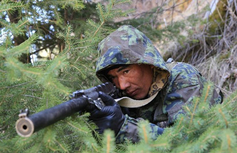 Soldiers participate in the exercise of Shanghai Cooperation Organization (SCO) member states near Bishkek, capital of Kyrgyzstan, on April 24, 2015.