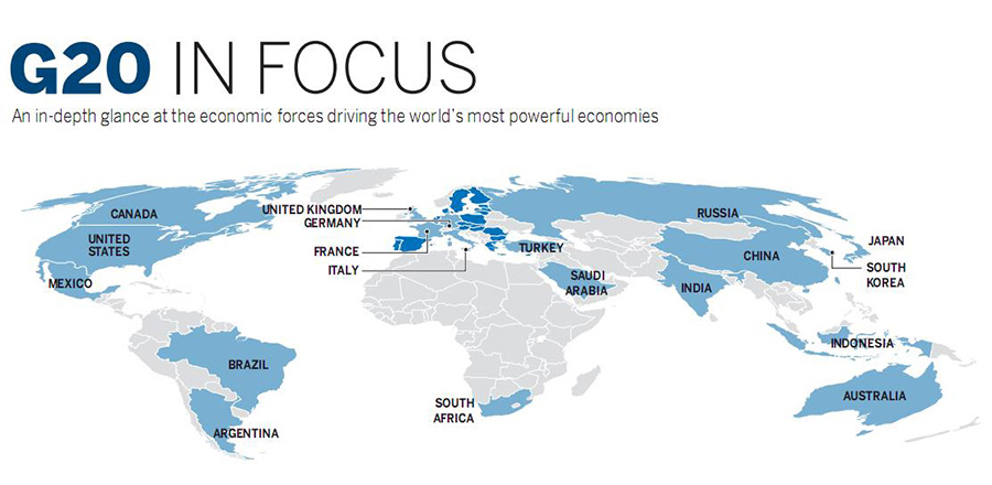 Moody's has downgraded growth forecast in the G20 economies to average 2.8 percent next year, from 3.1 percent, said the rating agency.
