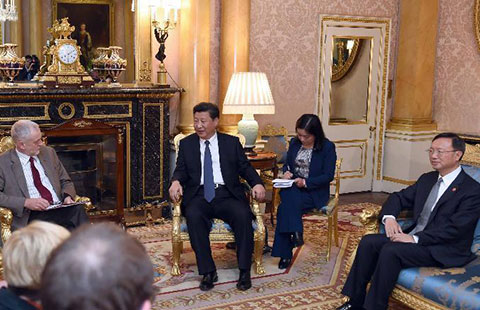 President Xi Jinping meets with British opposition Labour Party leader Jeremy Corbyn at Buckingham Place in London on Oct 20.