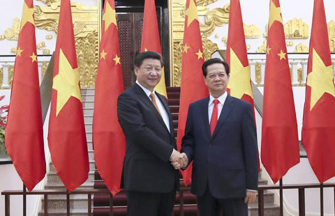 Chinese President Xi Jinping, who is also general secretary of the Communist Party of China (CPC) Central Committee, holds talks with Vietnamese Prime Minister Nguyen Tan Dung in Hanoi, Vietnam, Nov. 5, 2015.