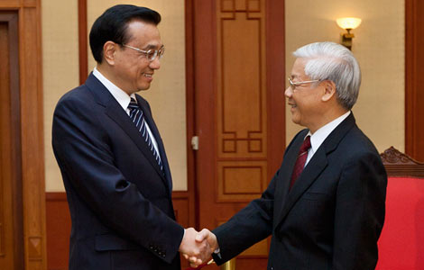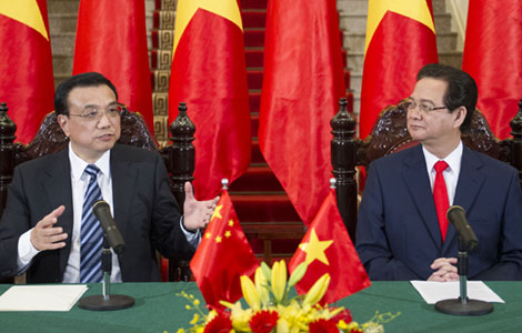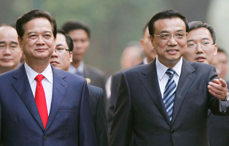 Chinese Premier Li Keqiang and his Vietnamese counterpart, Nguyen Tan Dung, agreed on Sunday to further deepen the partnership between their two countries simultaneously along three tracks of maritime, onshore and financial cooperation.
