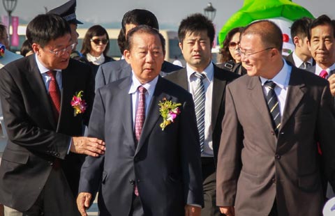 At a huge hall full of music, applause and an unusually large Japanese delegation, President Xi Jinping has struck a friendly tone on China-Japan ties, while also warning against any attempt to distort Japan's wartime history.