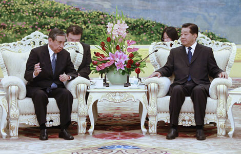 China's top political advisor Jia Qinglin on Thursday called on all Japanese people to work with the Chinese side to return China-Japan ties to the track of sound development.
