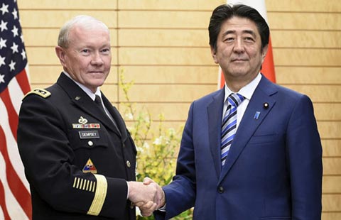 When Japanese Prime Minister Shinzo Abe stepped into the well of the US Capitol on Wednesday, reminders of his country's World War II-era military aggression were right outside. Abe instead chose to focus on future military matters - an enhanced alliance with the United States.