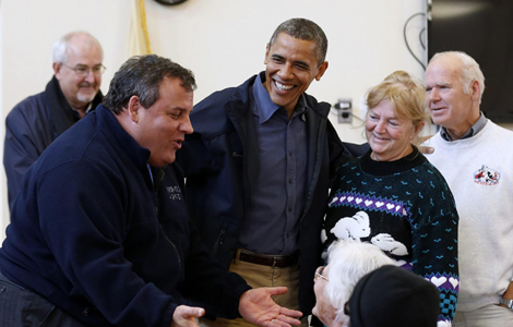 Obama front and center in storm crisis as Romney subdued
