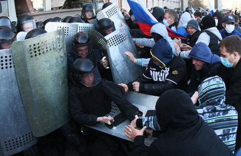 2014-04-08 07:12Ukraine detains 12 former riot police in deaths of protesters