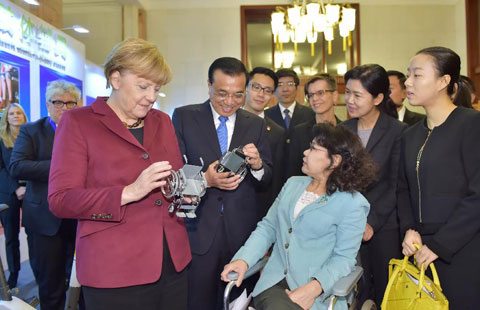 Li Keqiang, Merkel attend meeting on disability in Beijing