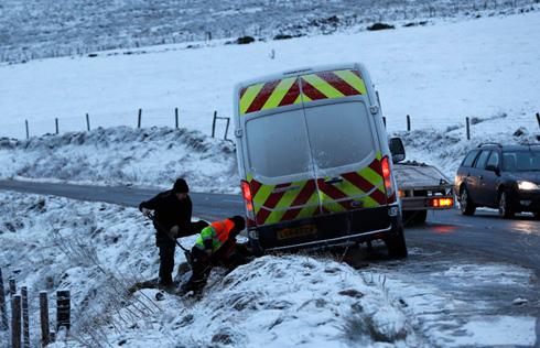 Britain braced for floods after heavy winds, snow