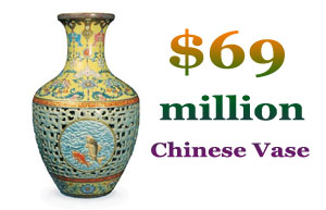 A Chinese vase discovered during a routine house clearance in a London suburb sold for 43 million pounds on Thursday, 40 times its estimate and an auction record for any work of art from Asia.