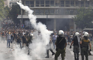 PM George Papandreou asked Greeks on Sunday to support austerity steps and avoid a catastrophic default, as European finance ministers discussed extending tens of billions of euros of aid to Athens.